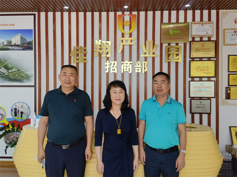 2021年6月8日,海南農(nóng)墾商貿(mào)物流產(chǎn)業(yè)集團(tuán)有限公司黨委書記、董事長(zhǎng)林興、海南省冷鏈物流協(xié)會(huì)會(huì)長(zhǎng)王鴻駿等一行蒞臨三亞佳翔物流產(chǎn)業(yè)小鎮(zhèn)參觀調(diào)研。